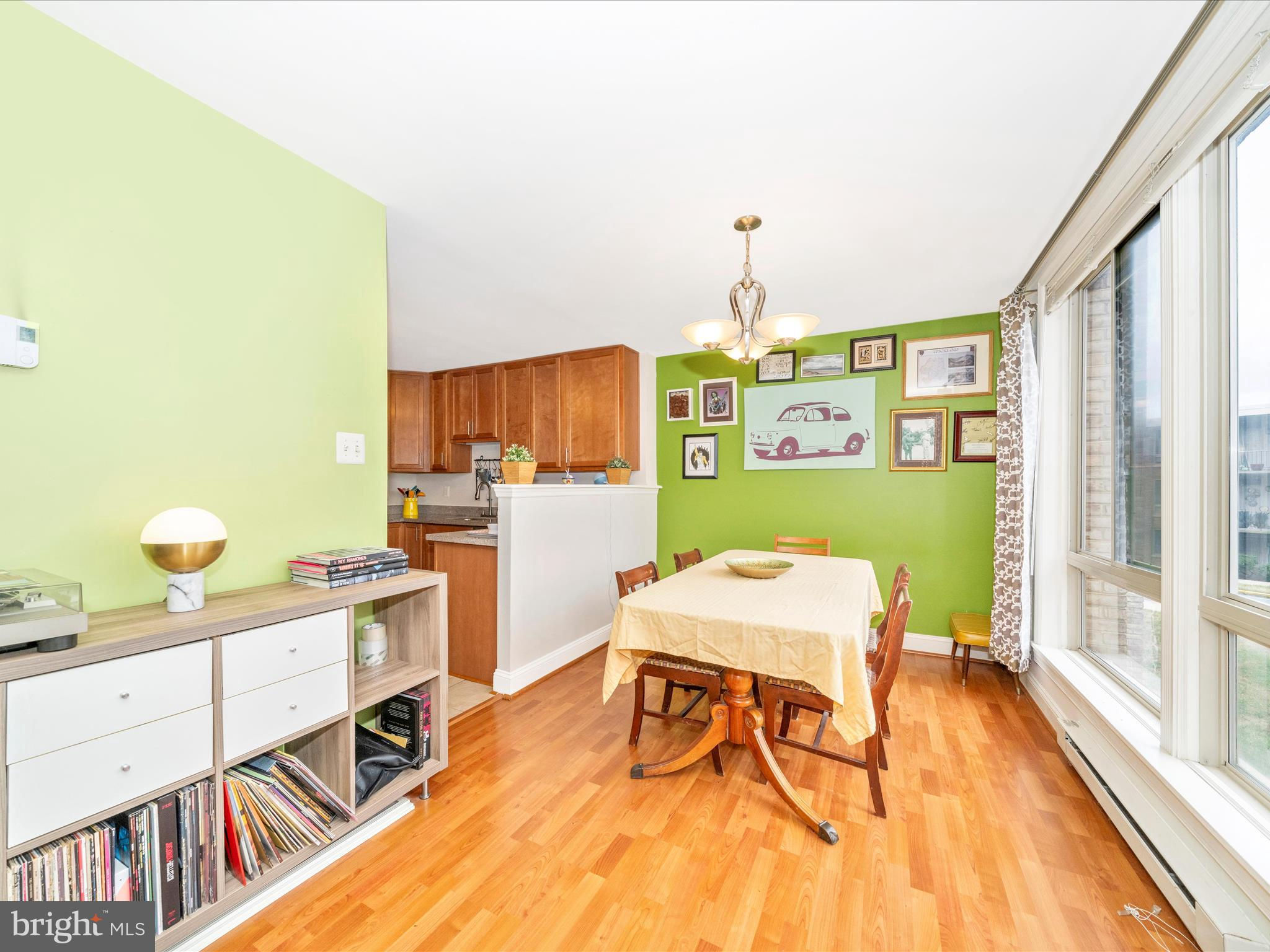 Welcome to this terrific, updated condo in the heart of Frederick. When you walk in to this vibrant space the first thing you'll notice is the light beaming from the wall of windows in the living room and dining room. The living room is spacious - with room for a seating/tv area as well as a space for a desk or reading nook. The dining room is large enough for a big table and open to the updated kitchen. Attractive and durable wood/laminate flooring throughout this living space! Step out on the balcony to enjoy the outdoors. A great place for morning coffee or to decompress in the evening. The kitchen has newer cabinetry and appliances, granite counters, full-size laundry, and tons of storage. As you move to the bedroom area you will notice a couple of closets for storing coats, the mechanicals, and linens. Both bedrooms are roomy, with new carpet, lots of light, and ample closet space. The wall unit air conditioners are efficient and quiet. Low condo fee includes water, sewer, fitness area, tot lot, and trash. Enjoy living in walking distance to restaurants, shops, groceries - plus easy access to all of Frederick's major commuter routes, public transportation. The convenience score is a 10, and the condo itself is an 11! Schedule your showing today! Buyers will need at least 20% down payment or cash to purchase.